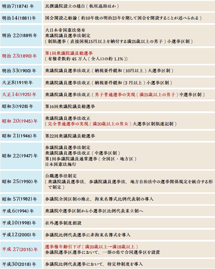 ○これまでの選挙制度の歴史を年表で振り返ってみよう