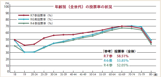 平成27(2015)年6月、選挙権年齢が満20歳以上から満18歳以上に引下げられ、平成 28(2016)年7月に執行された第24回参議院議員通常選挙から適用されました。