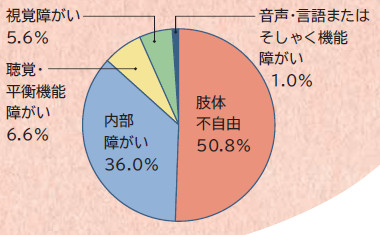 本市が発行する障害者手帳(身体障害者手帳、療育手帳、精神障害者保健福祉手帳)の所持者は、全市民の約7%に当たる、約13万8千人です。身体障害者手帳の所持者は約8万人で、そのうち肢体不自由が約半数を占めます。