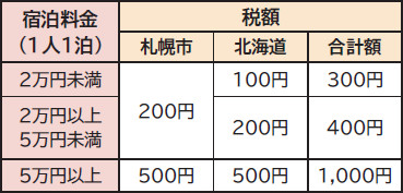 宿泊料金に応じた宿泊税(市と北海道の合計額)を宿泊施設に納める