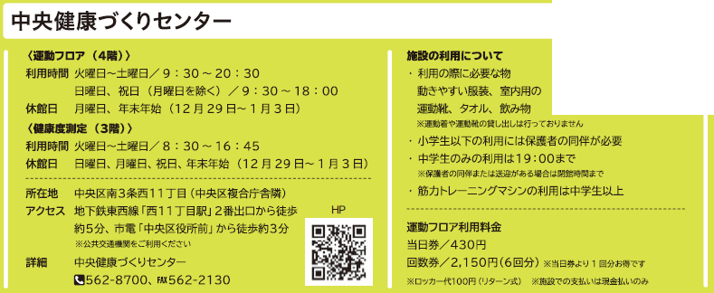 健康 そんなときは!健康づくりセンターで運動してみませんか? 2/9 前の記事 次の記事 発行日 : 2025年12月01日 自治体名 : 北海道札幌市中央区 広報紙名 : 広報さっぽろ 中央区 2025年12月号 Tweet シェアする 中央区連絡先一覧 中央区からのお知らせ(12月11日からの内容です)