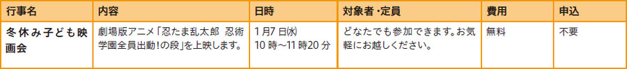 詳細は電話または直接各施設へ。