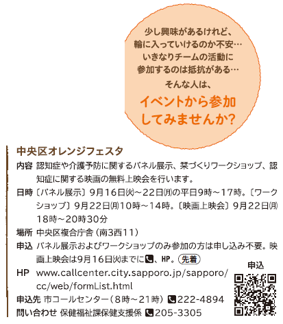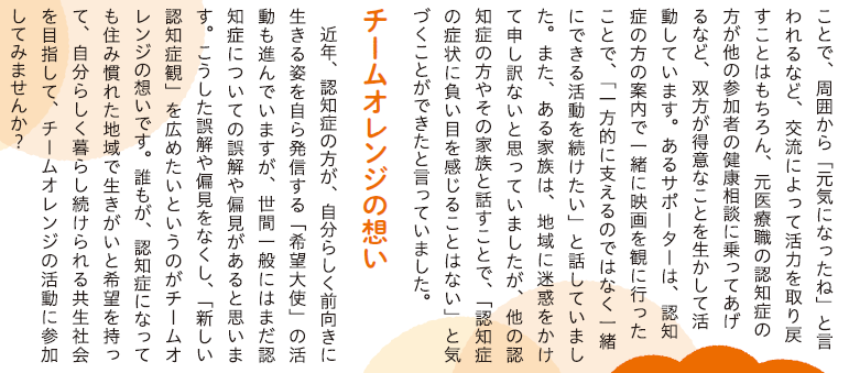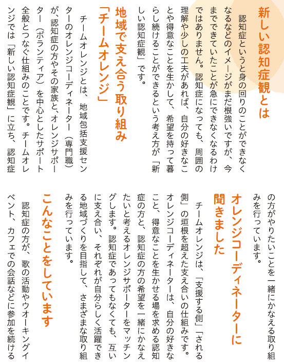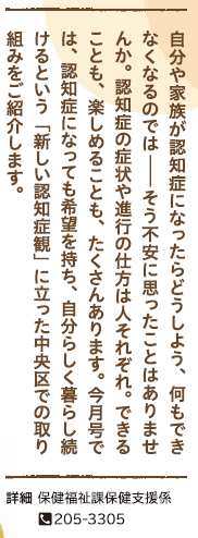 くらし 認知症になっても自分らしく暮らせる社会へ-地域で支え合うチームオレンジの取り組み 2/8 前の記事 次の記事 発行日 : 2025年09月01日 自治体名 : 北海道札幌市中央区 広報紙名 : 広報さっぽろ 中央区 2025年9月号 Tweet シェアする 中央区連絡先一覧 中央区からのお知らせ(9月11日からの内容です)