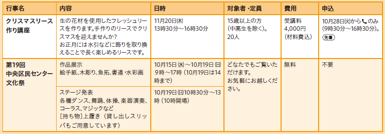 問合せ:中央区民センター