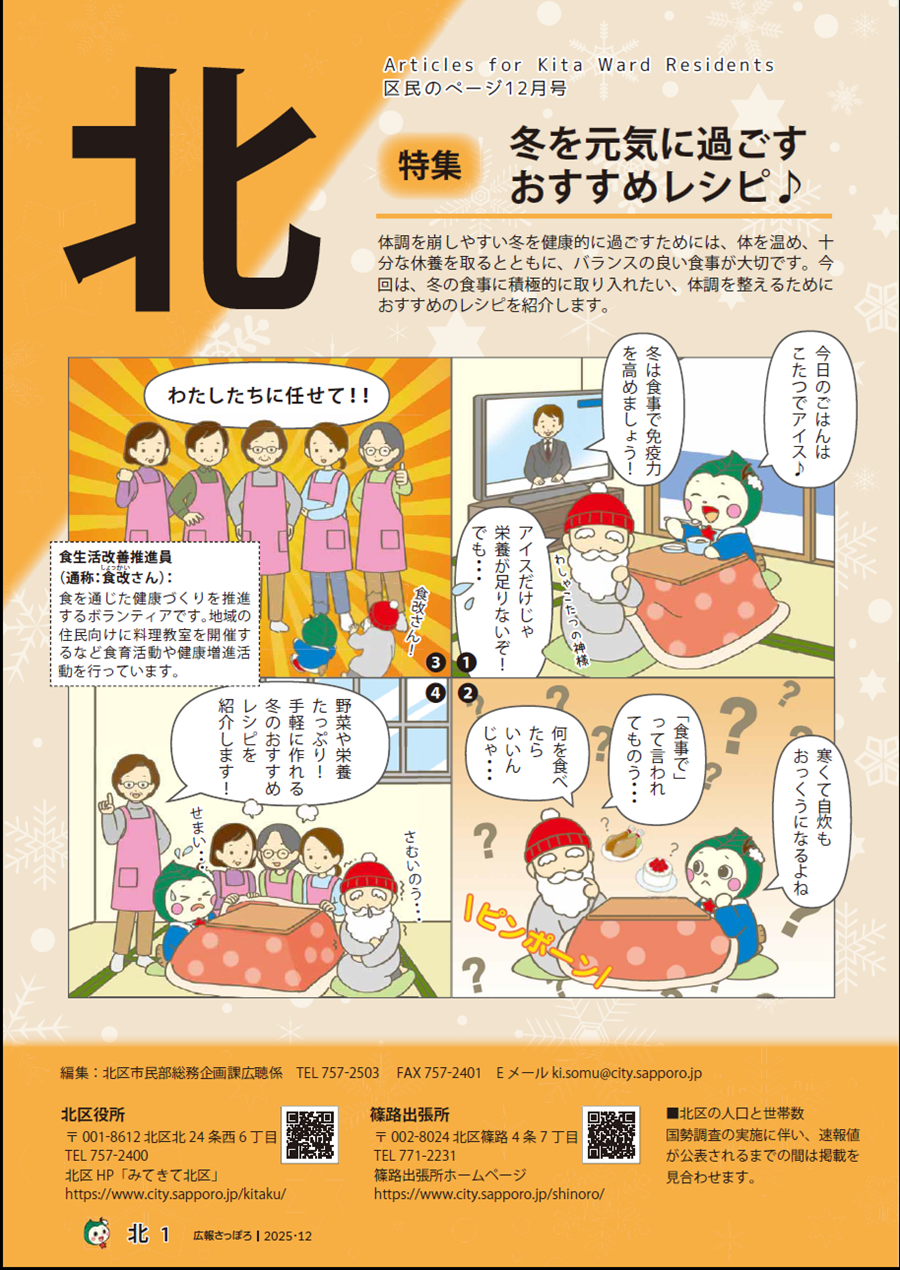 くらし 広報さっぽろ 北区 2025年12月号 表紙 1/6 次の記事 発行日 : 2025年12月01日 自治体名 : 北海道札幌市北区 広報紙名 : 広報さっぽろ 北区 2025年12月号 Tweet シェアする 広報さっぽろ 北区 2025年12月号 P.2