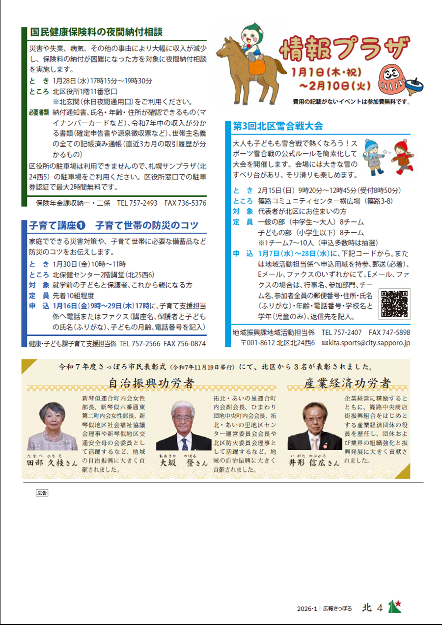 講座 広報さっぽろ 北区 2026年1月号 P.4 4/6 前の記事 次の記事 発行日 : 2026年01月01日 自治体名 : 北海道札幌市北区 広報紙名 : 広報さっぽろ 北区 2026年1月号 Tweet シェアする 広報さっぽろ 北区 2026年1月号 P.3 広報さっぽろ 北区 2026年1月号 P.5