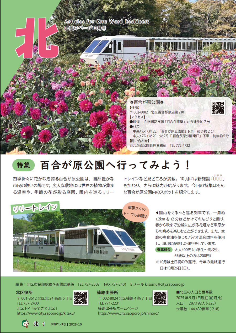 くらし 広報さっぽろ 北区 2025年10月号 表紙 1/6 次の記事 発行日 : 2025年10月01日 自治体名 : 北海道札幌市北区 広報紙名 : 広報さっぽろ 北区 2025年10月号 Tweet シェアする 広報さっぽろ 北区 2025年10月号 P.2