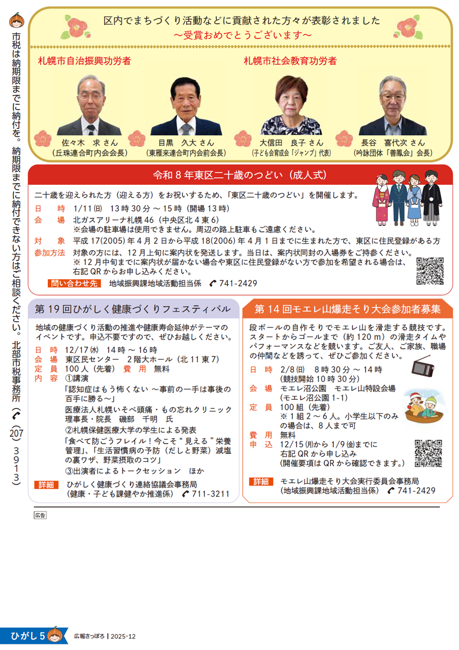 くらし 広報さっぽろ 東区 2025年12月号 P.5 5/6 前の記事 次の記事 発行日 : 2025年12月01日 自治体名 : 北海道札幌市東区 広報紙名 : 広報さっぽろ 東区 2025年12月号 Tweet シェアする 広報さっぽろ 東区 2025年12月号 P.4 広報さっぽろ 東区 2025年12月号 P.6