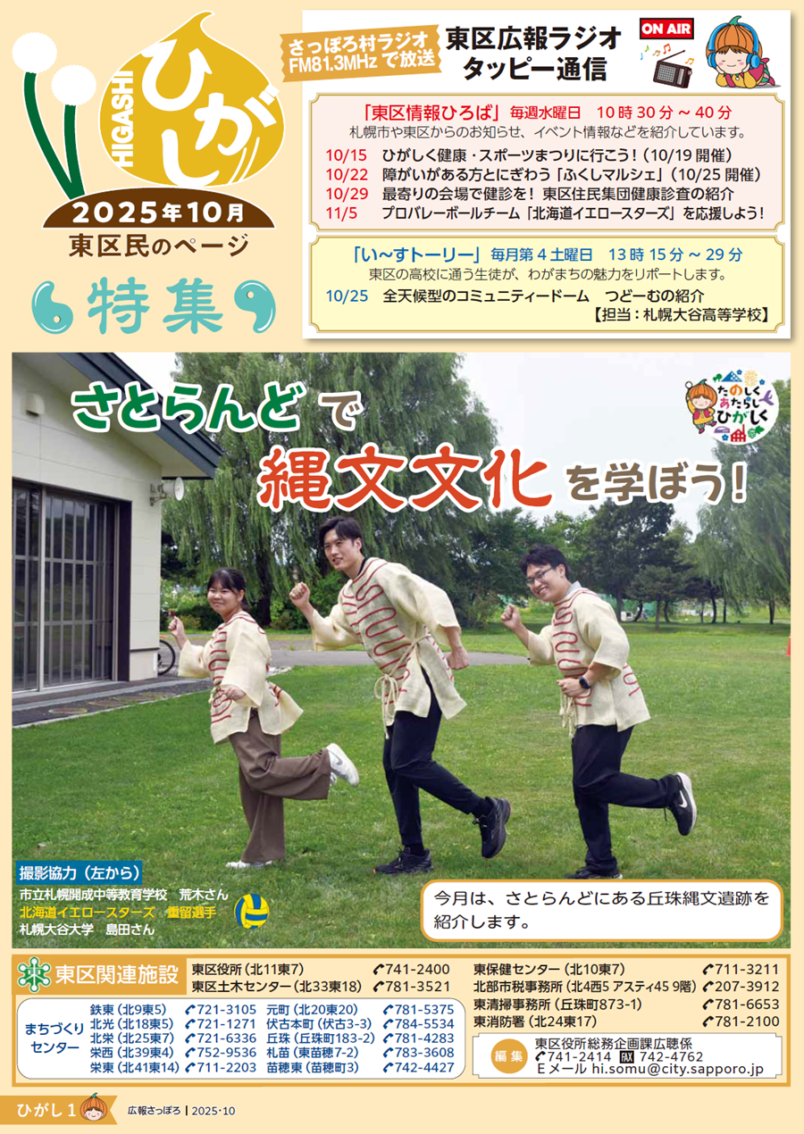 くらし 広報さっぽろ 東区 2025年10月号 表紙 1/6 次の記事 発行日 : 2025年10月01日 自治体名 : 北海道札幌市東区 広報紙名 : 広報さっぽろ 東区 2025年10月号 Tweet シェアする 広報さっぽろ 東区 2025年10月号 P.2