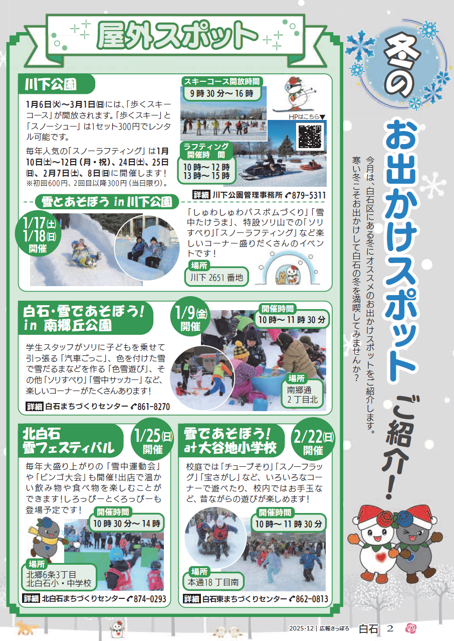 その他 広報さっぽろ 白石区 2025年12月号 P.2 2/6 前の記事 次の記事 発行日 : 2025年12月01日 自治体名 : 北海道札幌市白石区 広報紙名 : 広報さっぽろ 白石区 2025年12月号 Tweet シェアする 広報さっぽろ 白石区 2025年12月号 表紙 広報さっぽろ 白石区 2025年12月号 P.3