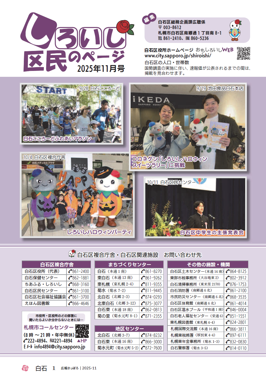 その他 広報さっぽろ 白石区 2025年11月号 表紙 1/6 次の記事 発行日 : 2025年11月01日 自治体名 : 北海道札幌市白石区 広報紙名 : 広報さっぽろ 白石区 2025年11月号 Tweet シェアする 広報さっぽろ 白石区 2025年11月号 P.2