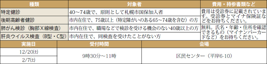 12月20日(土)に区民センターで開催する住民集団健康診査の来場者先着200人にプレゼントを配布します!