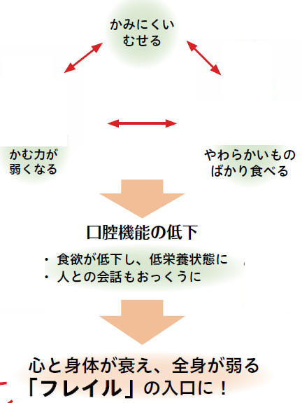 ・「たいしたことない」と放っておくと、やがて全身の衰え「フレイル」へとつながる可能性があります。