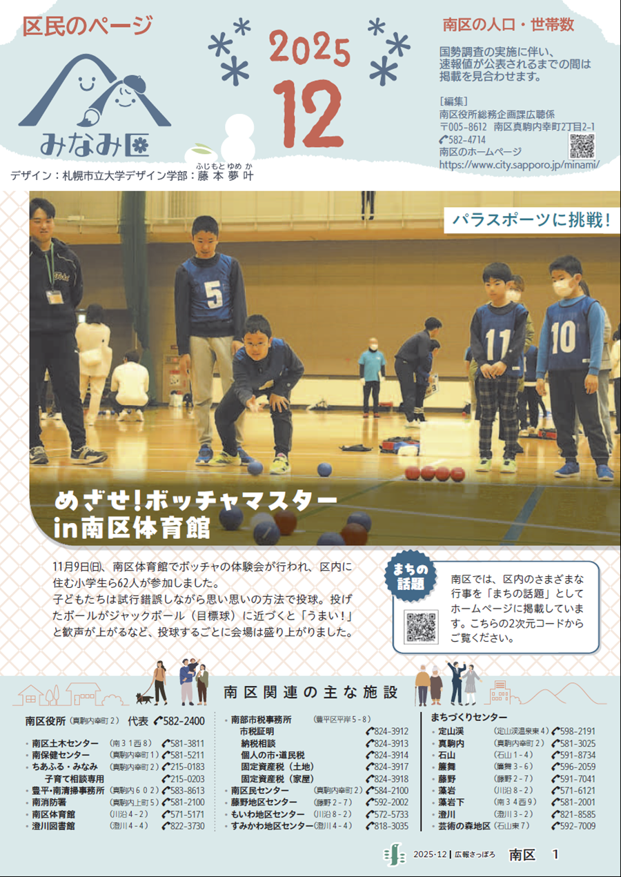 スポーツ 広報さっぽろ 南区 2025年12月号 表紙 1/6 次の記事 発行日 : 2025年12月01日 自治体名 : 北海道札幌市南区 広報紙名 : 広報さっぽろ 南区 2025年12月号 Tweet シェアする 広報さっぽろ 南区 2025年12月号 P.2