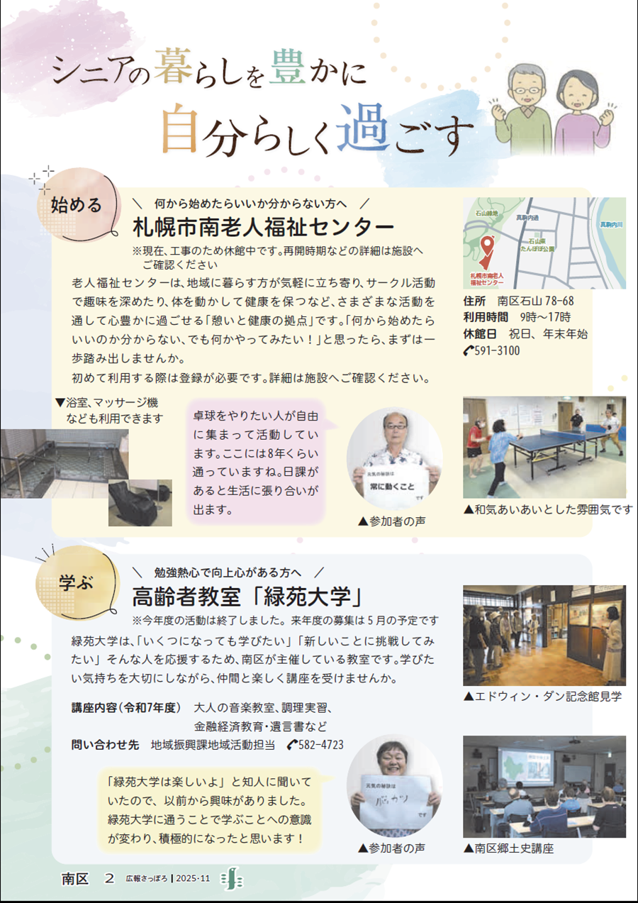 くらし 広報さっぽろ 南区 2025年11月号 P.2 2/6 前の記事 次の記事 発行日 : 2025年11月01日 自治体名 : 北海道札幌市南区 広報紙名 : 広報さっぽろ 南区 2025年11月号 Tweet シェアする 広報さっぽろ 南区 2025年11月号 表紙 広報さっぽろ 南区 2025年11月号 P.3