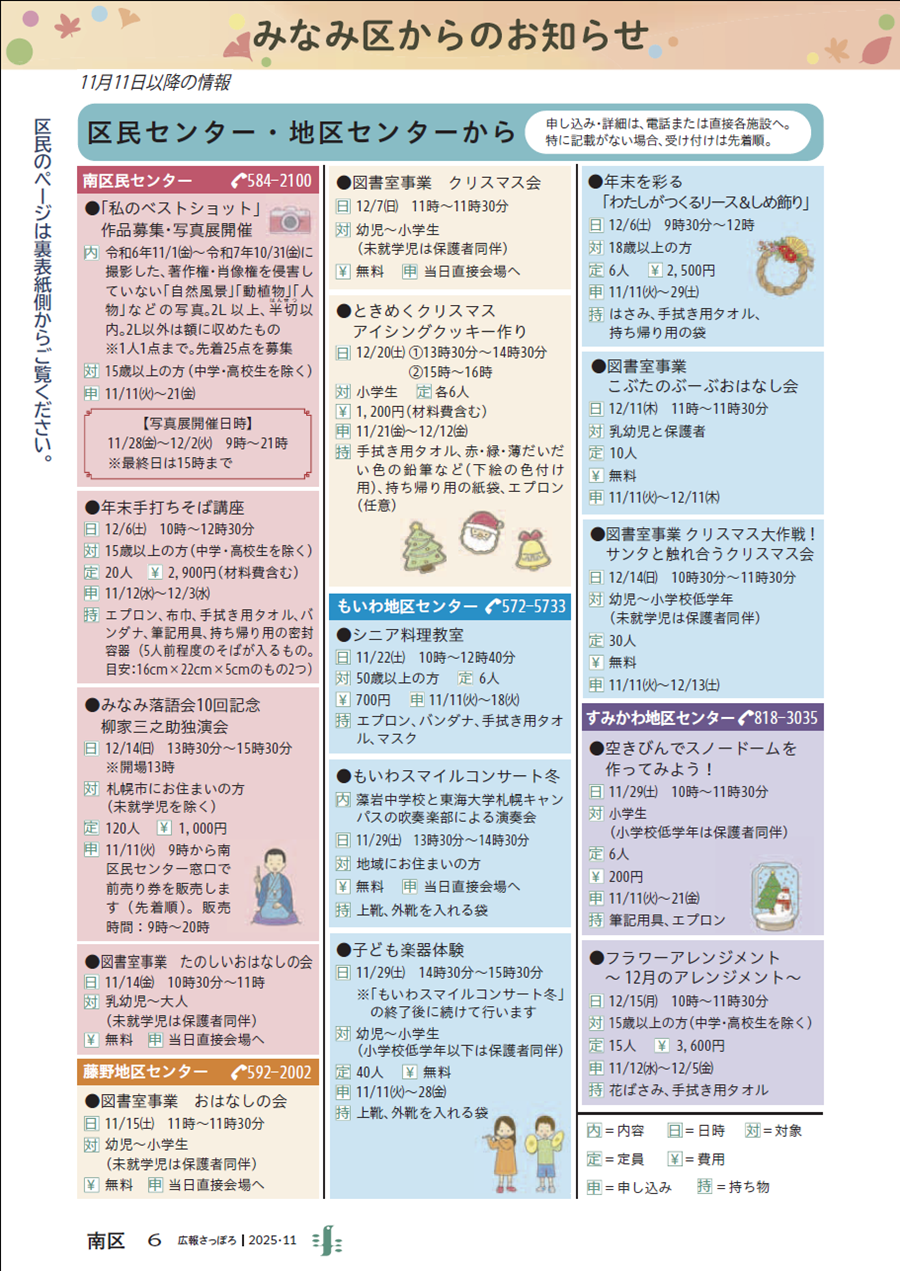 講座 広報さっぽろ 南区 2025年11月号 P.6 6/6 前の記事 発行日 : 2025年11月01日 自治体名 : 北海道札幌市南区 広報紙名 : 広報さっぽろ 南区 2025年11月号 Tweet シェアする 広報さっぽろ 南区 2025年11月号 P.5