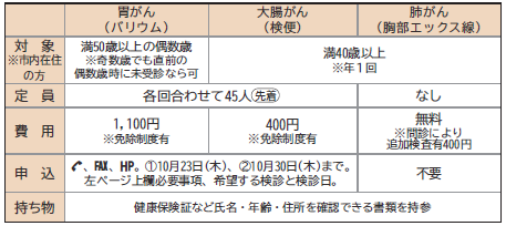 持ち物:(2)のみ健康診断結果とお薬手帳