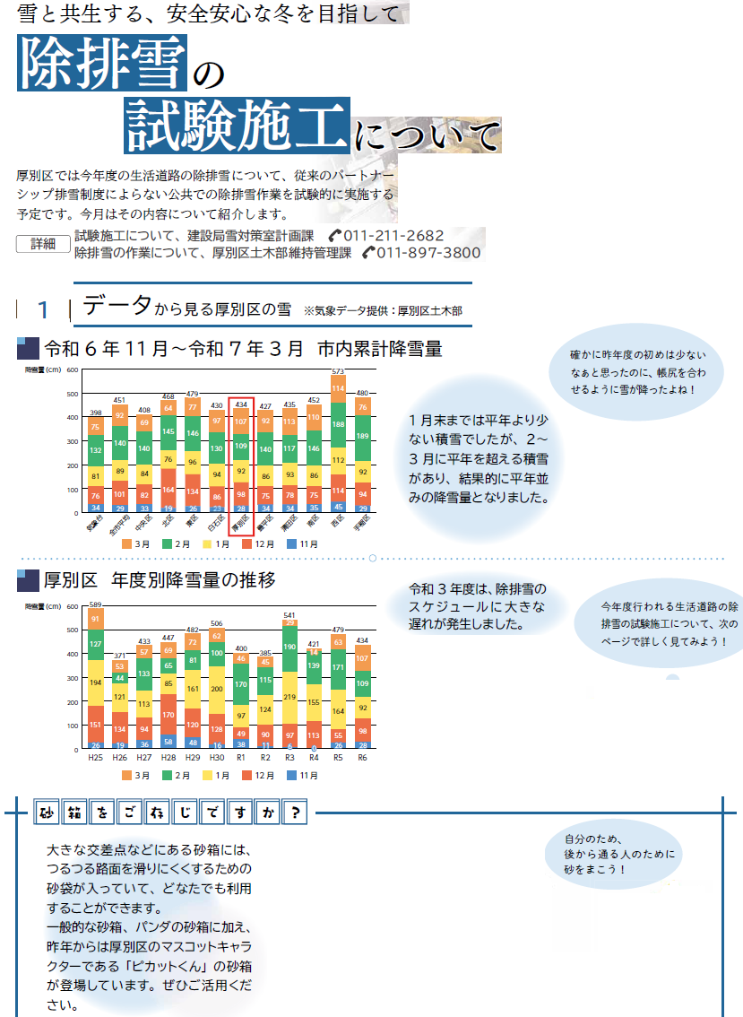 くらし 今月の特集 除排雪の試験施工について 1/8 次の記事 発行日 : 2025年12月01日 自治体名 : 北海道札幌市厚別区 広報紙名 : 広報さっぽろ 厚別区 2025年12月号 Tweet シェアする 12月厚別区からのお知らせ(1)