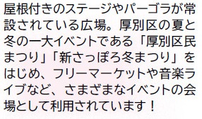 厚別区は6つの地区に分かれていて、それぞれの地区にはそれぞれ違った歴史や特色があります。各代表する場所やイベント、オススメスポットなどを連載でご紹介します。今回は第3回「厚別中央地区」です!