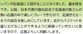 ※レバンガ北海道に関する情報はレバンガ北海道ホームページをご覧ください