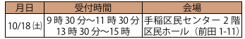 日時:10/27(月)・28(火)の9時~10時(受付時間)