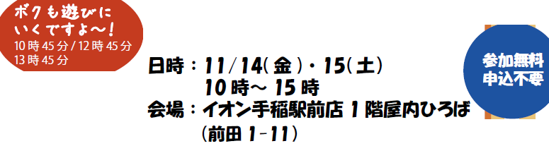 14日(金)のみ 10時30分/11時30分/12時15分/13時30分/14時