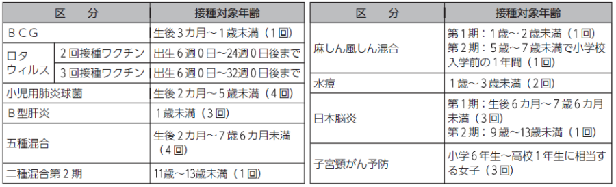 ◇市が実施する定期予防接種