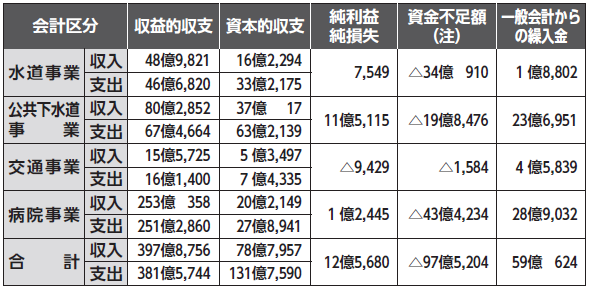 6年度企業会計決算は、表2のとおりです。