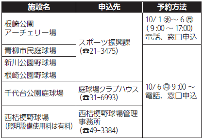 函館アリーナ(武道館、スタジオ、トレーニングルームのみ)、市民プール、千代台公園弓道場、千代台公園陸上競技場(14:00以降)