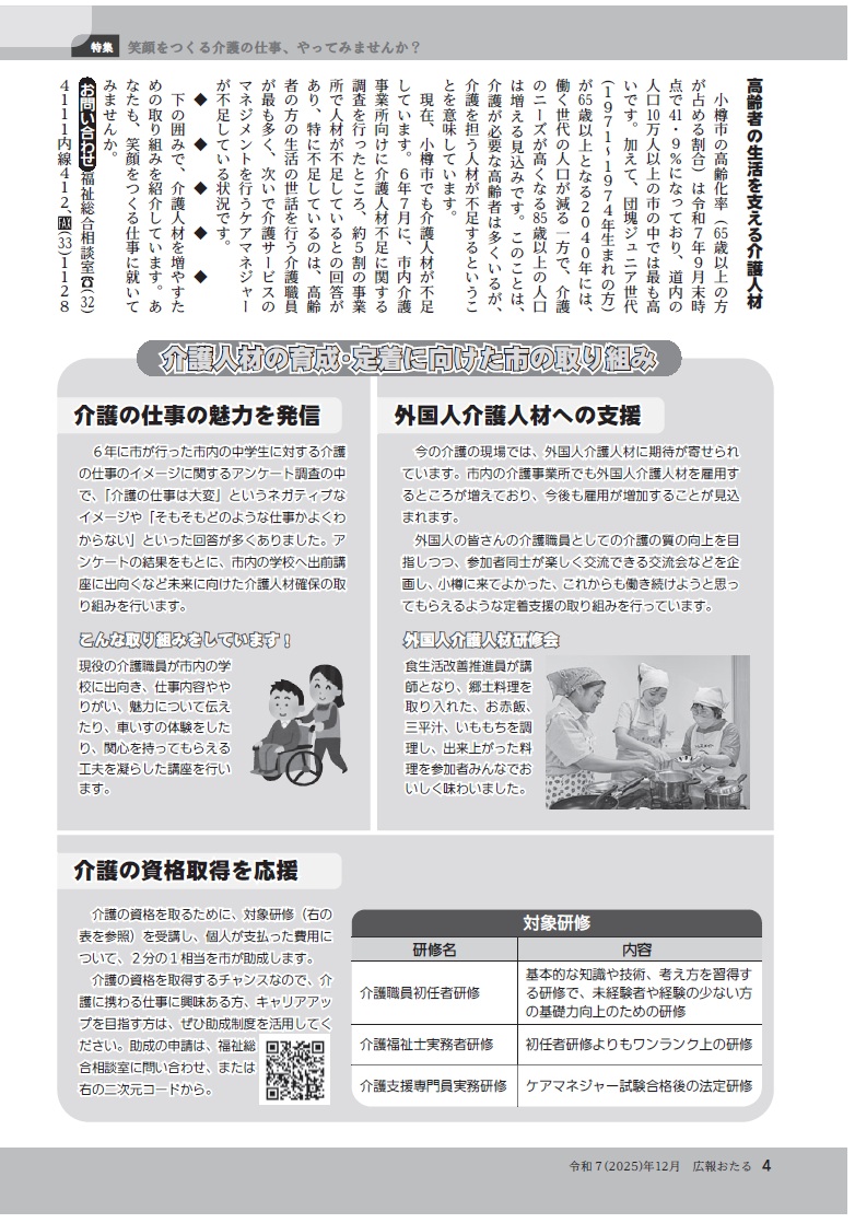 くらし 広報おたる 2025年12月号 P.4 4/20 前の記事 次の記事 発行日 : 2025年12月01日 自治体名 : 北海道小樽市 広報紙名 : 広報おたる 2025年12月号 Tweet シェアする 広報おたる 2025年12月号 P.3 広報おたる 2025年12月号 P.5