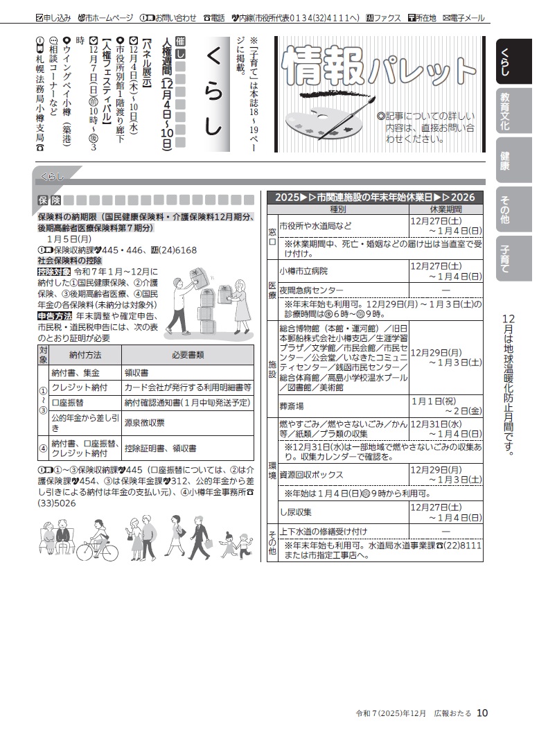 くらし 広報おたる 2025年12月号 P.10 10/20 前の記事 次の記事 発行日 : 2025年12月01日 自治体名 : 北海道小樽市 広報紙名 : 広報おたる 2025年12月号 Tweet シェアする 広報おたる 2025年12月号 P.9 広報おたる 2025年12月号 P.11