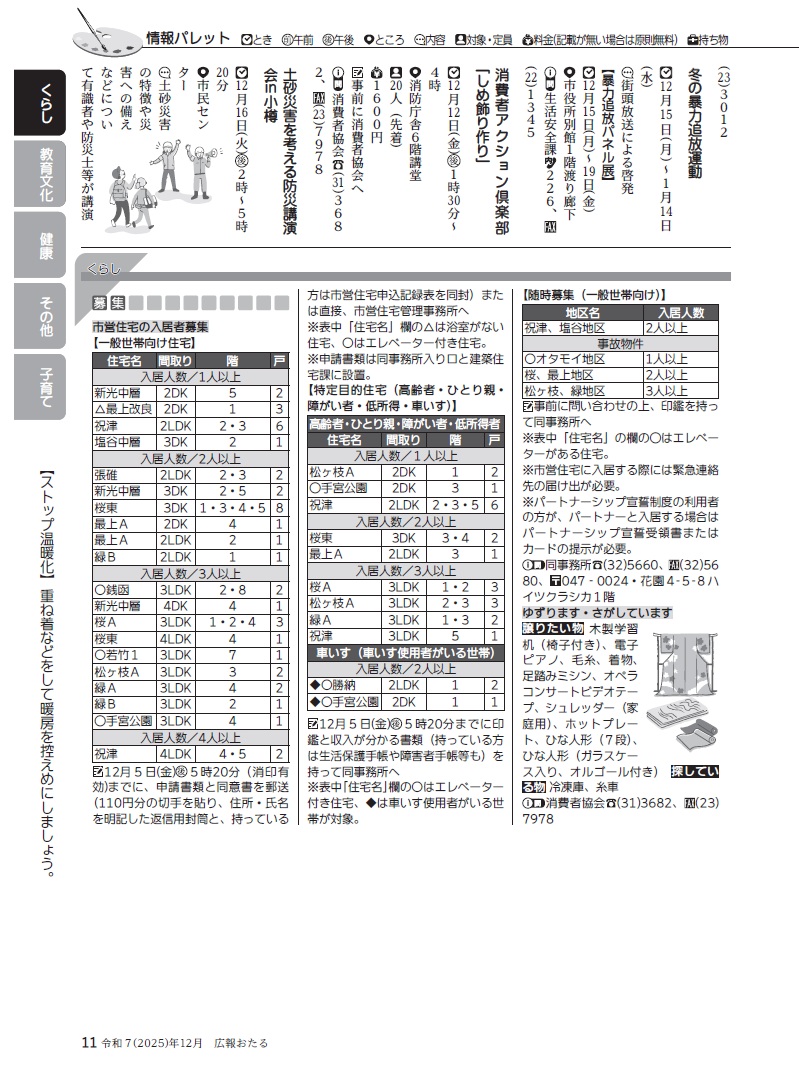 くらし 広報おたる 2025年12月号 P.11 11/20 前の記事 次の記事 発行日 : 2025年12月01日 自治体名 : 北海道小樽市 広報紙名 : 広報おたる 2025年12月号 Tweet シェアする 広報おたる 2025年12月号 P.10 広報おたる 2025年12月号 P.12