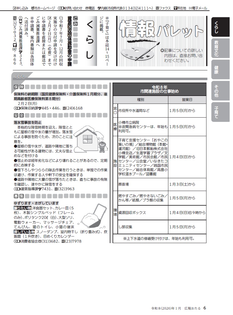 くらし 広報おたる 2026年1月号 P.6 6/16 前の記事 次の記事 発行日 : 2026年01月01日 自治体名 : 北海道小樽市 広報紙名 : 広報おたる 2026年1月号 Tweet シェアする 広報おたる 2026年1月号 P.5 広報おたる 2026年1月号 P.7