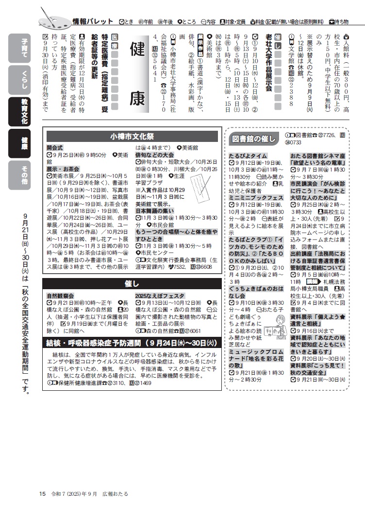 くらし 広報おたる 2025年9月号 P.15 15/20 前の記事 次の記事 発行日 : 2025年09月01日 自治体名 : 北海道小樽市 広報紙名 : 広報おたる 2025年9月号 Tweet シェアする 広報おたる 2025年9月号 P.14 広報おたる 2025年9月号 P.16