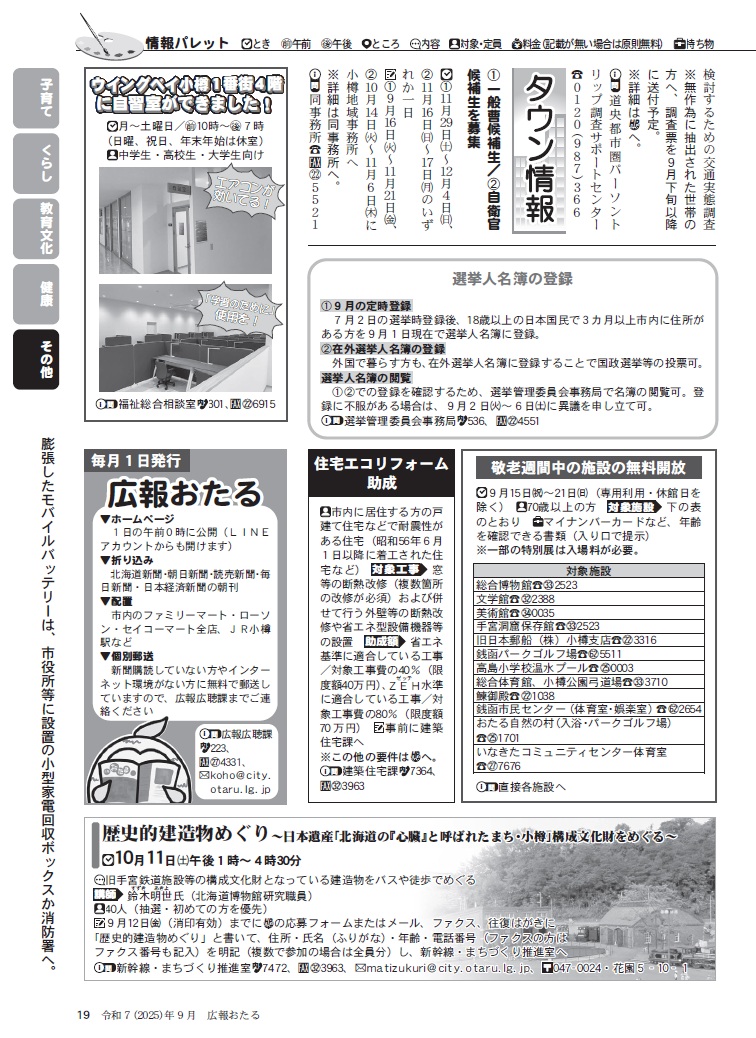 くらし 広報おたる 2025年9月号 P.19 19/20 前の記事 次の記事 発行日 : 2025年09月01日 自治体名 : 北海道小樽市 広報紙名 : 広報おたる 2025年9月号 Tweet シェアする 広報おたる 2025年9月号 P.18 広報おたる 2025年9月号 裏表紙