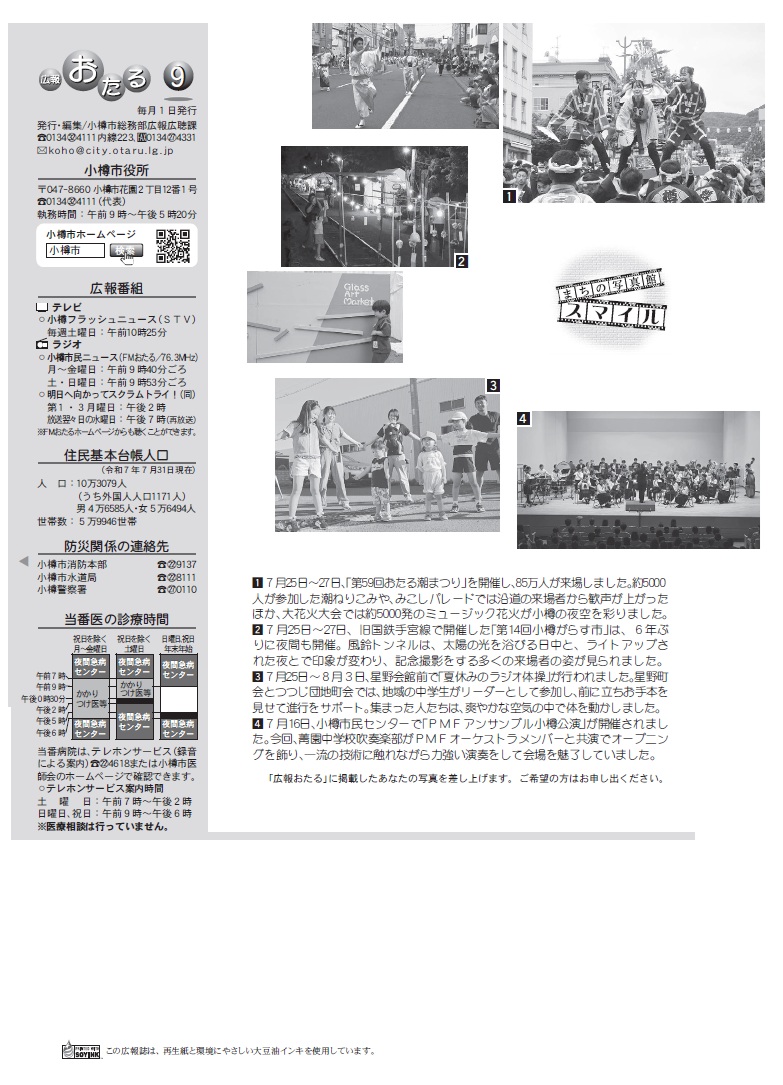 その他 広報おたる 2025年9月号 裏表紙 20/20 前の記事 発行日 : 2025年09月01日 自治体名 : 北海道小樽市 広報紙名 : 広報おたる 2025年9月号 Tweet シェアする 広報おたる 2025年9月号 P.19