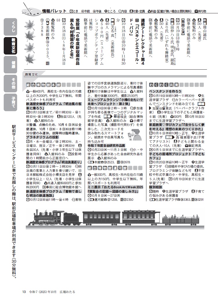 くらし 広報おたる 2025年10月号 P.13 13/20 前の記事 次の記事 発行日 : 2025年10月01日 自治体名 : 北海道小樽市 広報紙名 : 広報おたる 2025年10月号 Tweet シェアする 広報おたる 2025年10月号 P.12 広報おたる 2025年10月号 P.14