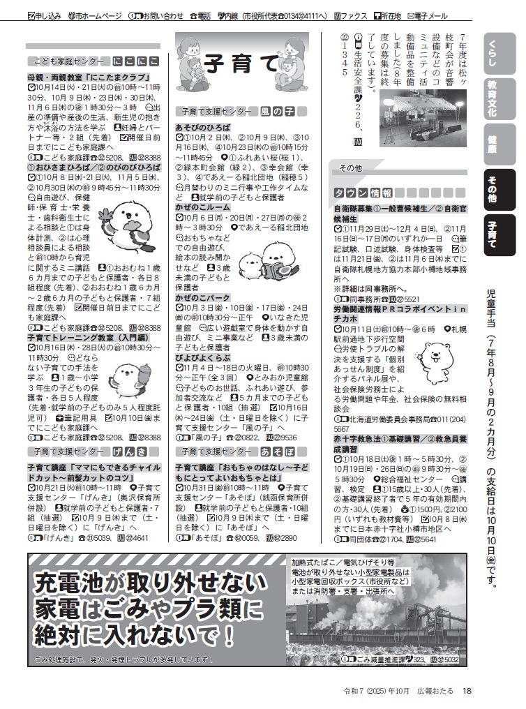 くらし 広報おたる 2025年10月号 P.18 18/20 前の記事 次の記事 発行日 : 2025年10月01日 自治体名 : 北海道小樽市 広報紙名 : 広報おたる 2025年10月号 Tweet シェアする 広報おたる 2025年10月号 P.17 広報おたる 2025年10月号 P.19
