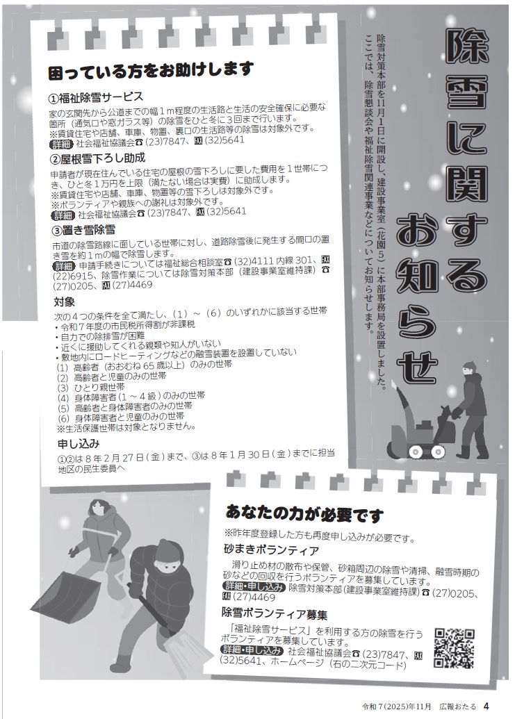 くらし 広報おたる 2025年11月号 P.4 4/20 前の記事 次の記事 発行日 : 2025年11月01日 自治体名 : 北海道小樽市 広報紙名 : 広報おたる 2025年11月号 Tweet シェアする 広報おたる 2025年11月号 P.3 広報おたる 2025年11月号 P.5