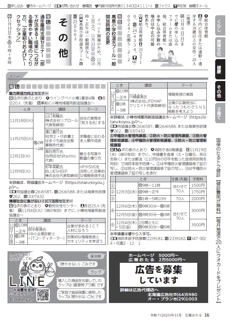 くらし 広報おたる 2025年11月号 P.16 16/20 前の記事 次の記事 発行日 : 2025年11月01日 自治体名 : 北海道小樽市 広報紙名 : 広報おたる 2025年11月号 Tweet シェアする 広報おたる 2025年11月号 P.15 広報おたる 2025年11月号 P.17