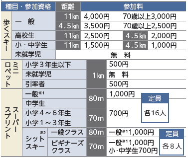その他:歩くスキー、ミニロペットは用具の無料貸出あり(要予約)
