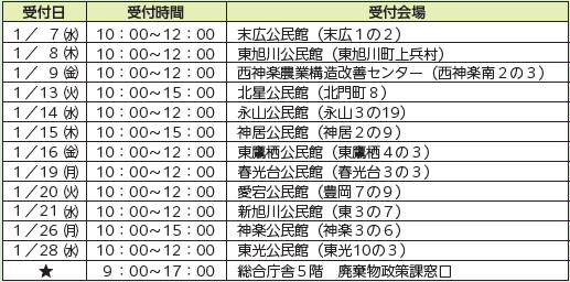 受付日程等:下の表のとおり