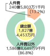 職員給与費:162億3,558万9千円(会計年度任用職員を除く職員給与費は144億3,388万6千円)