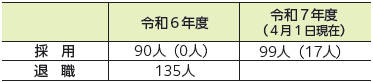 ※採用欄の( )内は、暫定再任用職員の人数(外数)。退職人数には、暫定再任用職員の任期満了を含む。