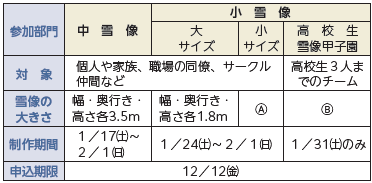 ※応募多数の場合は抽選。雪ブロックは実行委員会で用意。制作期間中、全日来場する必要はありません。