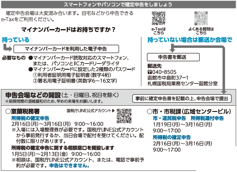 くらし 確定申告のお知らせ 47/52 前の記事 次の記事 発行日 : 2026年01月01日 自治体名 : 北海道室蘭市 広報紙名 : 広報むろらん 2026年(令和8年)1月号 Tweet シェアする 困ったときのあれこれ相談 人のうごき