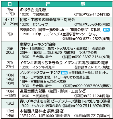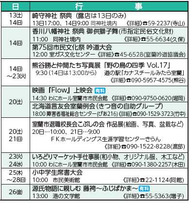 イベント 9月おでかけガイド 6/51 前の記事 次の記事 発行日 : 2025年09月01日 自治体名 : 北海道室蘭市 広報紙名 : 広報むろらん 2025年(令和7年)9月号 他のページに掲載している催しもあります。 日時・内容は、変更になる場合があります。 Tweet シェアする 伝言板(2) ご存じですか?行政相談委員