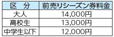 ※シーズン券を郵送で受け取る人は460円(郵送代)かかります。