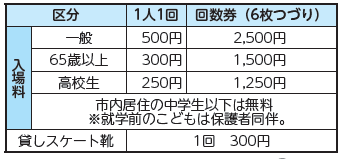 ※11月1日は、無料開放します(個人利用のみ)。貸しスケート靴は有料です。