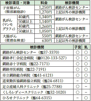 申込方法:釧路がん検診センター(【電話】37-3370)